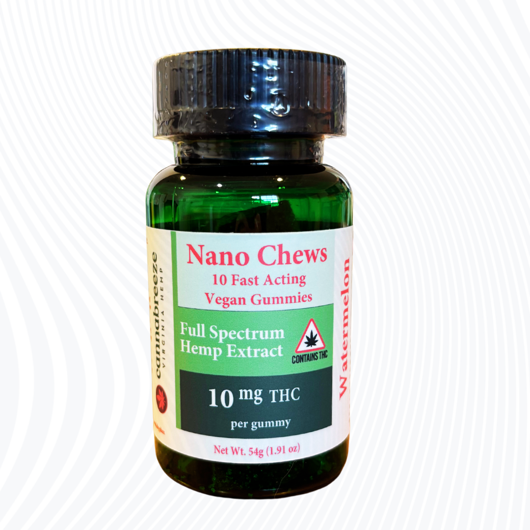 If you are tired of waiting for your gummies to kick in, consider Nano Technology. With onset beginning in as little as 15 minutes, our Full Spectrum 10mg THC Nano Chews along with 250mg of CBD can be fun and maybe therapeutic too. From a fun night out to the best night sleep, these effective, plant-based premium grade gummies are head and shoulders above the competition. With 10 gummies per package along with a great watermelon flavor, they’re super convenient and perfect for any time of the day. Always Full Spectrum and Solvent Free. Clean, Clear, Chemical Free.